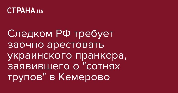 Следственный комитет России обратился в суд с требованием о заочном аресте украинского пранкера Евгения Вольнова, которого обвиняют в распространении информации о "сотнях погибших" во время пожара в торговом центре "Зимняя вишня" в Кемерове.