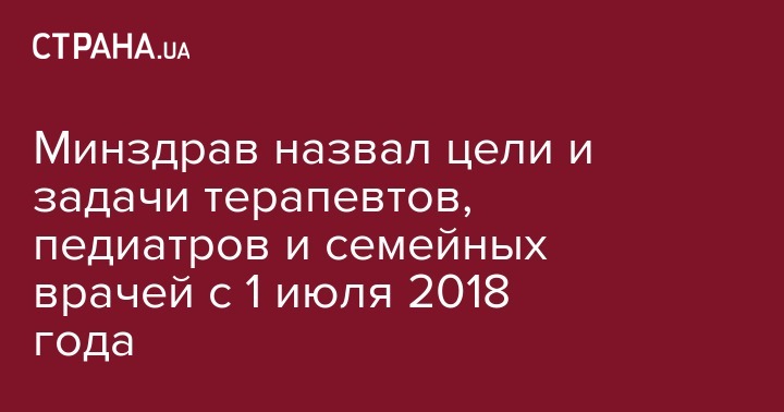 Минздрав назвал цели и задачи терапевтов, педиатров и семейных врачей с 1 июля 2018 года