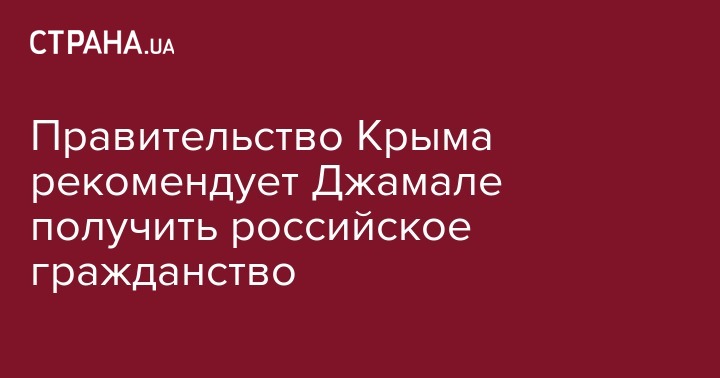 Правительство Республики Крым рекомендует украинской певице Джамале, победившей на Евровидении 2016, сменить гражданство с украинского на российское и вернуться на историческую родину.