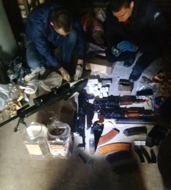 Правоохранители изъяли 3 револьвера, пистолет, снайперскую винтовку, два автомата Калашникова, два глушителя, ручной пулемет Калашникова, две гранаты и сотни патронов различного калибра.