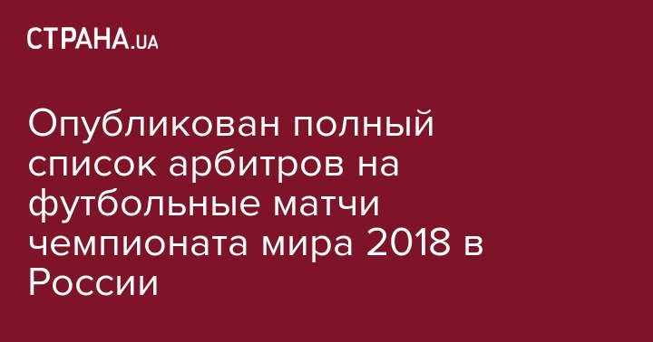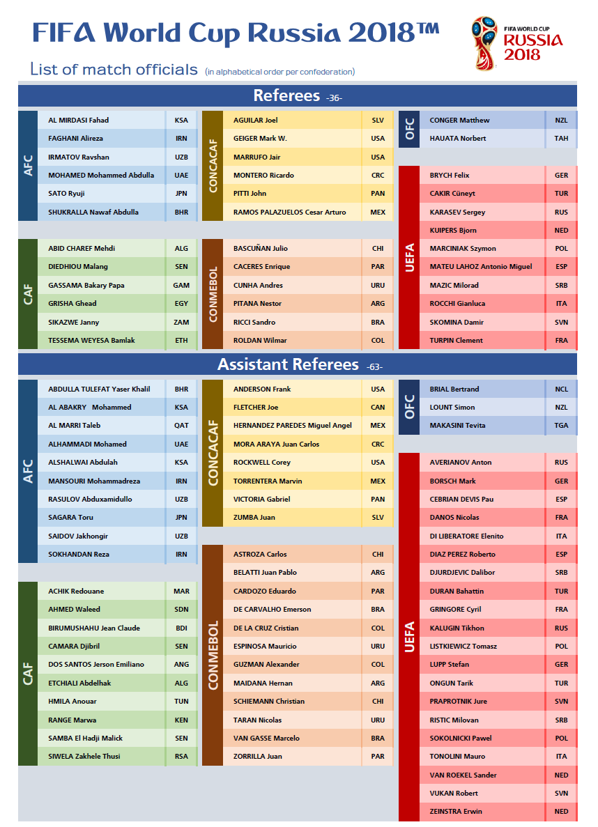 Опубликован полный список арбитров на футбольные матчи чемпионата мира 2018 в России
