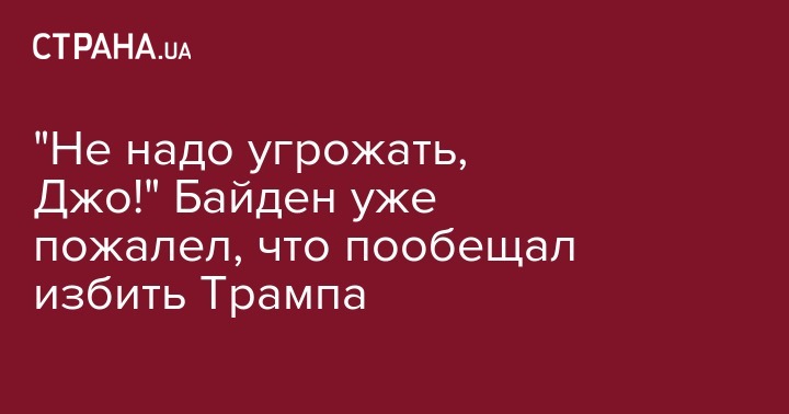 "Байден пытается показать, что он крутой парень. В действительности, он слаб - как ментально, так и физически. И, все же, он решил мне угрожать физической расправой, уже во второй раз. Он меня не знает, но он очень быстро и сильно упал бы, и при этом плакал все время. Не надо угрожать, Джо!" - написал Трамп.