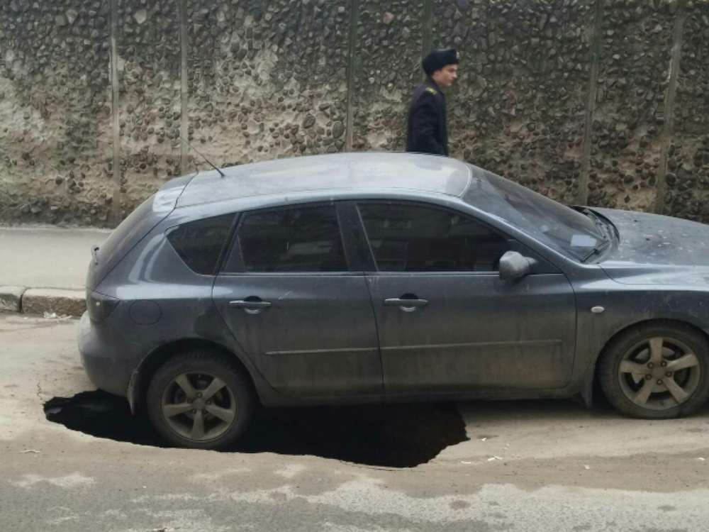 Как рассказали изданию очевидцы, в немаленькую яму угодил легковой автомобиль. К счастью, обошлось  без жертв и пострадавших.