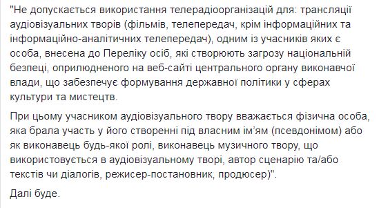 По словам Костинского, трансляция фильма содержит признаки нарушения требований профильного закона "О телевидении и радиовещании".