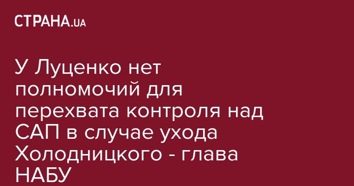 Генпрокурор Украины Юрий Луценко не имеет полномочий для установления контроля над деятельностью Специализированной антикоррупционной прокуратуры (САП) в случае отставки Назара Холодницкого.