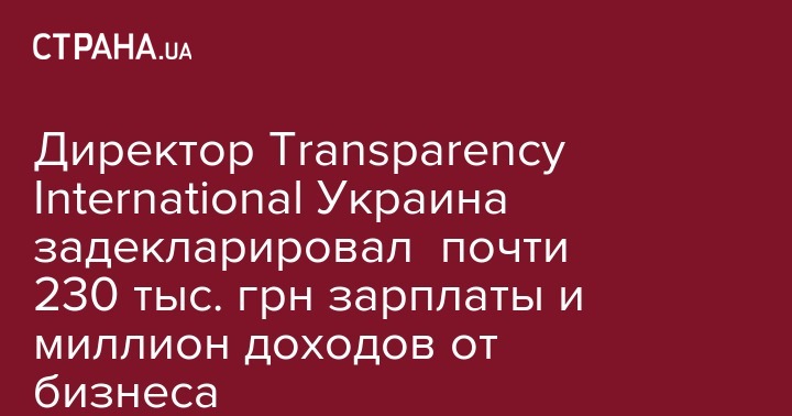 Директор Transparency International Украина задекларировал почти 230 тыс. грн зарплаты и миллион доходов от бизнеса