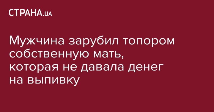 В Рокитнянском районе Киевской области 30-летний мужчина зарубил топором собственную мать, потому что она не дала ему денег на спиртное. После убийства, он вынес зерно, которое было во дворе, продал его и пошел пить.