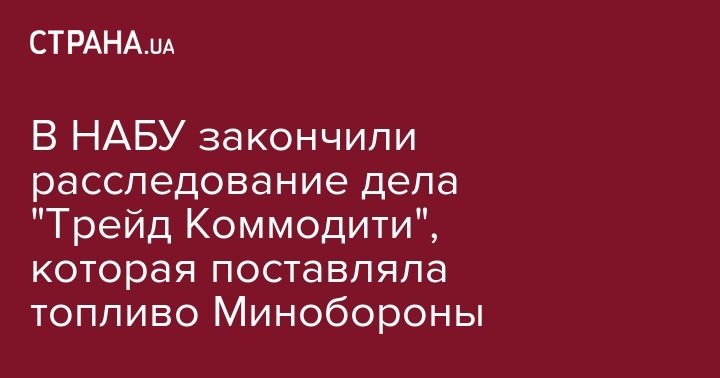 В НАБУ закончили расследование дела "Трейд Коммодити", которая поставляла топливо Минобороны