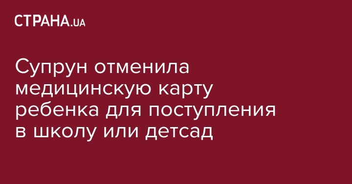 И.о. министра здравоохранения Ульяна Супрун заявила, что школы и детсады не имеют права требовать от родителей медицинскую карту ребенка для поступления. Об этом Супрун написала на своей странице в Facebook.