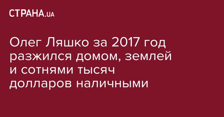 Олег Ляшко за 2017 год разжился домом, землей и сотнями тысяч долларов наличными
