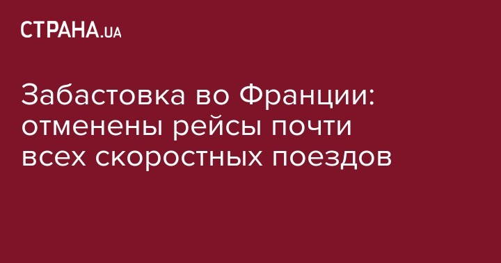 Во Франции из-за массовой забастовки работников железных дорог 3 апреля произойдет отмена 88% рейсов высокоскоростных поездов TGV. Об этом сообщает ТАСС со ссылкой на компанию SNCF.