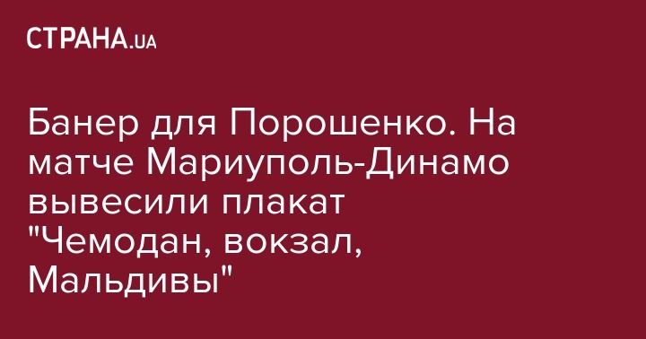 Банер для Порошенко. На матче Мариуполь-Динамо вывесили плакат "Чемодан, вокзал, Мальдивы"