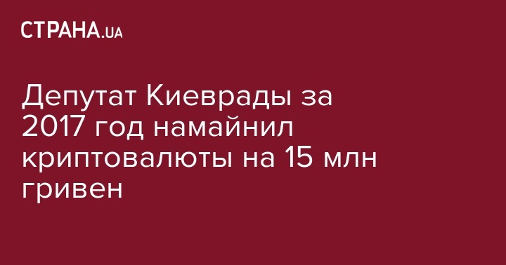 Депутат Киеврады задекларировал владение криптовалютами биткоин на 11,1 млн гривен и эфириум - на 3,8 млн гривен. Криптовалюта была приобретена в конце 2017 года.