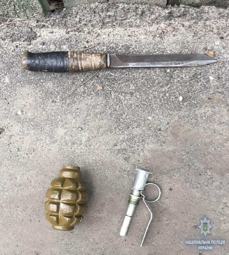 Полицейские остановили на улице подозрительного мужчину, у которого нашли гранату Ф-1 и нож. Впоследствии в его доме следственно-оперативная группа Голосеевского управления полиции изъяли каннабис, самодельные гранаты, патроны и 6 дымовых шашек.
