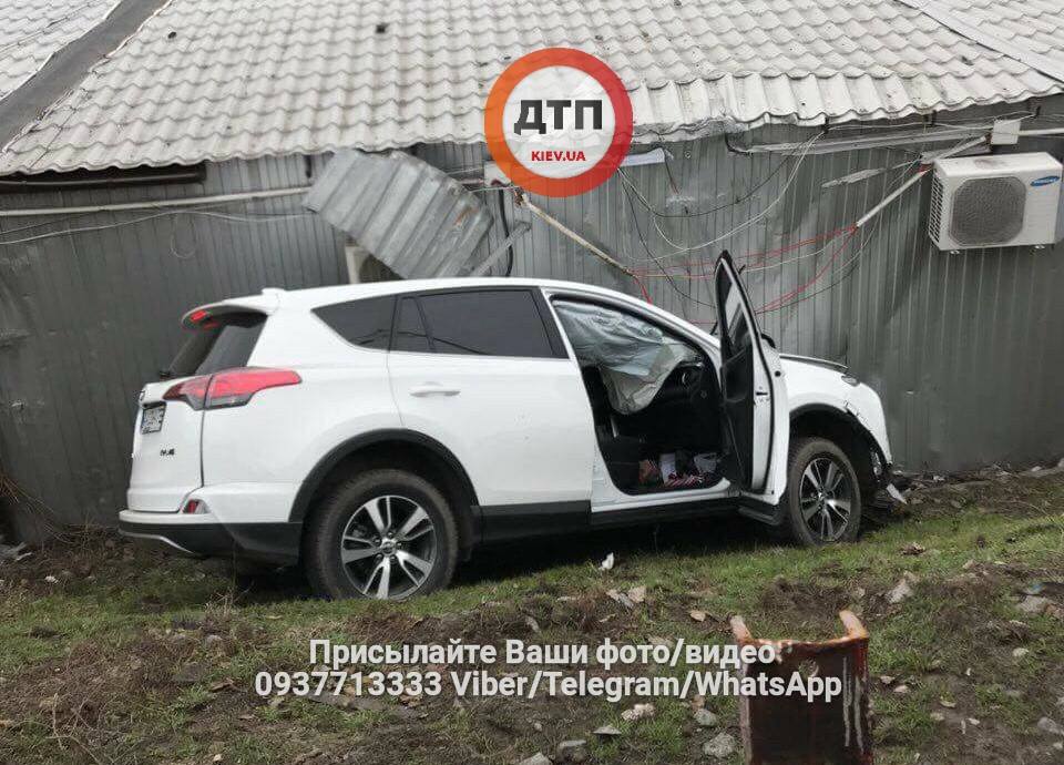 На Троещине Toyota упала с автокольца в кювет, водитель в больнице. Фото