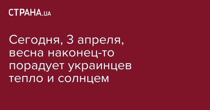Погода в Украине сегодня, 3 апреля, будет по-настоящему весенней. Долгожданное тепло придет практически во все области. Об этом сообщает синоптик Наталья Диденко на своей странице в Facebook.