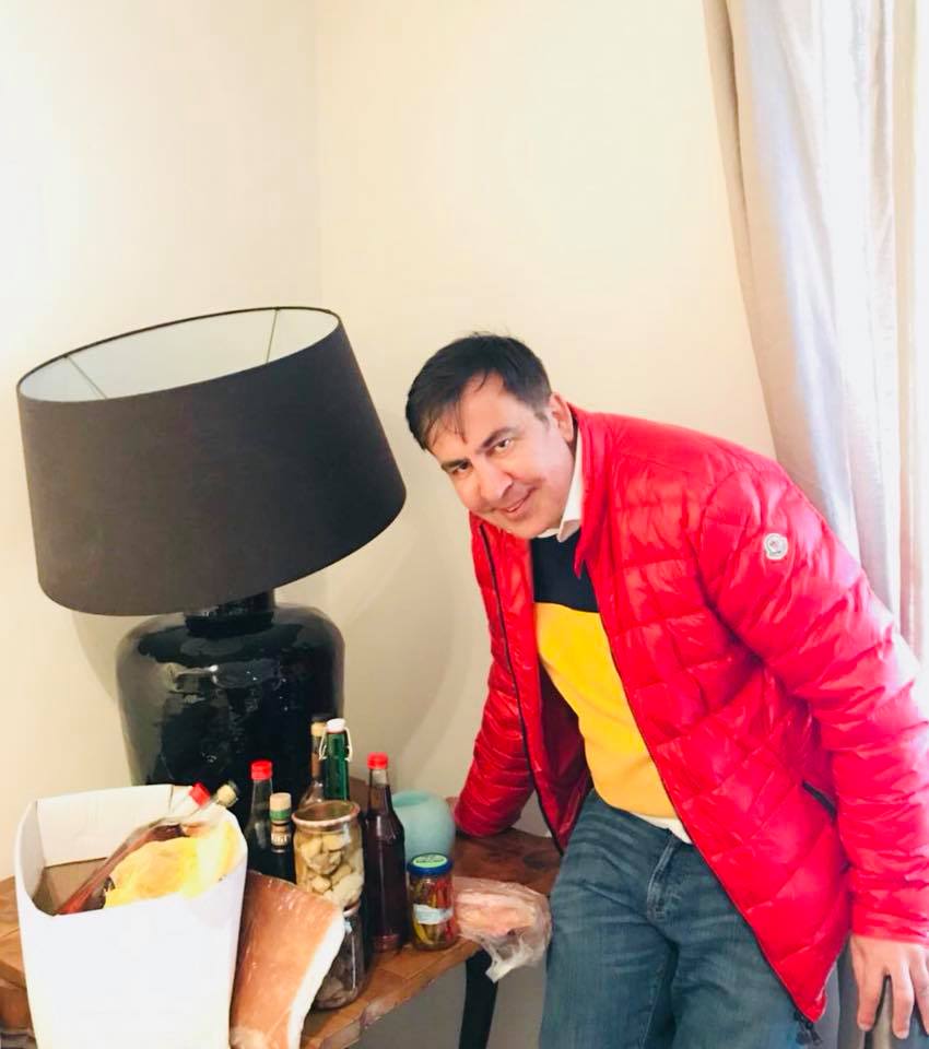 "Найти амстердамских собутыльников". Саакашвили привезли к Пасхе украинское сало, грибы и самогон