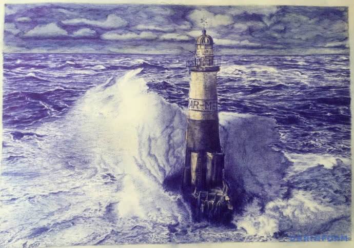 На обратной стороне рисунка маяка Сущенко указал, что он расположен на скале Ар-Мен, а моряки его называют "Ад Адов".