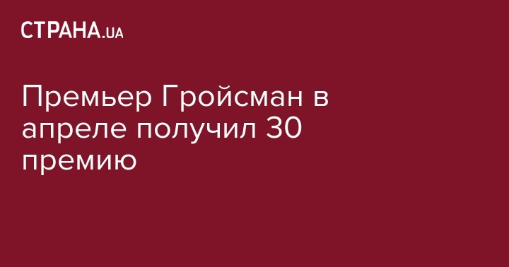 В апреле премьеру была начислена ежемесячная премия (30% от должностного оклада) в сумме 1 304,29 гривны.
