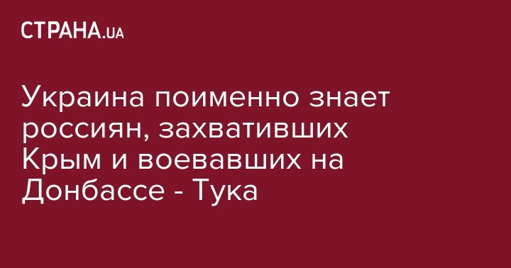 "Только по Крыму идентифицированы с установочными данными мест проживания, гражданства, всех географических данных - более 1,5 тыс. кадровых российских военнослужащих, принимавших непосредственное участие в аннексии Крыма. Что касается событий на Донбассе - установлено несколько десятков тысяч конкретных лиц, подозреваемых в совершении незаконных действий на территории Украины", - доложил Тука во время круглого стола на тему: "Насилие и пытки на оккупированном Донбассе: наказание неотвратимо".