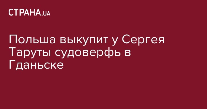 Агентство развития промышленности (ARP S.A.) Польши сообщило о завершении первого, "самого важного" этапа переговоров о выкупе доли Сергея Таруты судостроительного завода Gdańsk Shipyard S.A. и производителя башен для ветроэлектростанций GSG Towers Sp. z o.o.