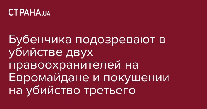 Участнику Евромайдана (2014) Ивану Бубенчику объявлено о подозрении в убийстве сотрудника правоохранительного органа и военнослужащего внутренних войск. Также он подозревается в покушении на убийство военнослужащего.