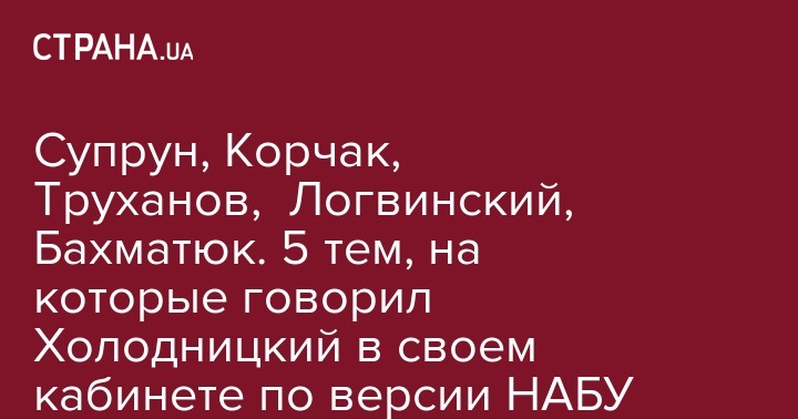 Супрун, Корчак, Труханов, Логвинский, Бахматюк. 5 тем, на которые говорил Холодницкий в своем кабинете по версии НАБУ