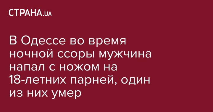 В Одессе во время ночной ссоры мужчина напал с ножом на 18-летних парней, один из них умер