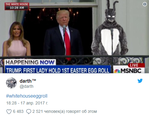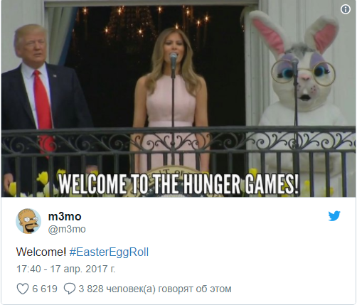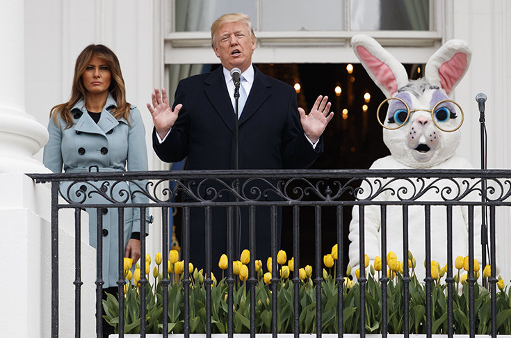 В традиционной программе были и соревнования по катанию яиц, чтение Меланией Трамп сказки для малышей в саду, торжественный парад и поздравительная речь президента с балкона рядом с гигантским пасхальным кроликом.