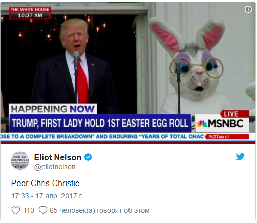 Стоит отметить, что с пасхальный плюшевым кроликом семья Трампов встречала Пасху и в прошлом году. После появления фото, кролик стал главным героем мемов интернет-пользователей. В основном люди интересовались, кто же решился примерить костюм: пресс-секретарь Белого дома Шон Спайсер или бывший Вице-президент США Джо Байден, который соскучился по резиденции президента.