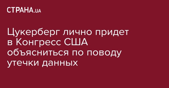 Цукерберг лично придет в Конгресс США объясниться по поводу утечки данных