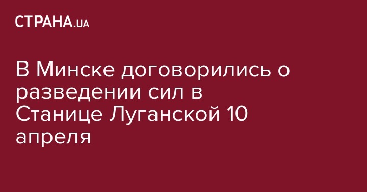 Разведение сил и средств в районе Станицы Луганской может состояться 10 апреля при отсутствии обстрелов на этом участке. Об этом сообщила в Facebook пресс-секретарь представителя Украины в Трехсторонней контактной группе (ТКГ) по Донбассу Леонида Кучмы Дарка Олифер по итогам заседания ТКГ в Минске.