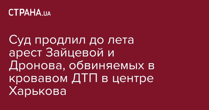 Обвиняемых в смертельном ДТП, совершенном 18 октября 2017 года в Харькове, Елену Зайцеву и Геннадия Дронова оставили под стражей до 1 июня. Такое решение принял Киевский районный суд Харькова, удовлетворив ходатайство прокурора. Об этом сообщает Интерфакс.