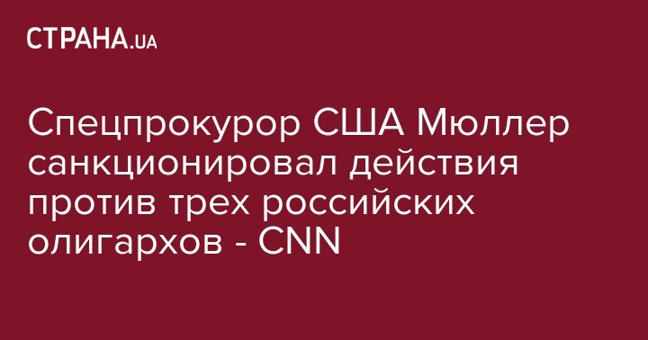 Спецпрокурор США Мюллер санкционировал действия против трех российских олигархов - CNN