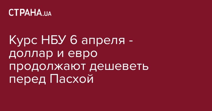 В пятницу, 6 апреля, Нацбанк установил официальный курс гривны по отношению к иностранным валютам. По сравнению с предыдущим рабочим днем доллар и евро стали еще дешевле.