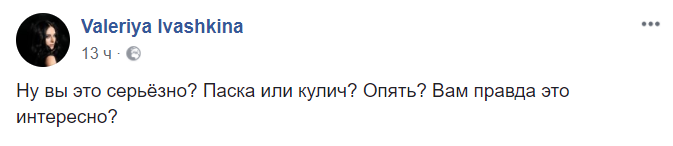 За тридцать лет жизни впервые вижу, чтобы пытались наши паски какими-то собачьими "куличами" обозвать".