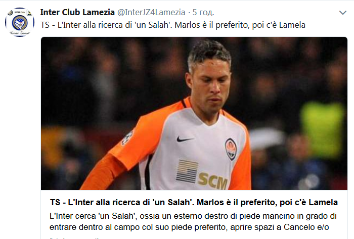 "Ламела не является приоритетом, даже после пяти сезонов в Премьер-лиге. В первую очередь, это, конечно же Марлос, который дебютировал в национальной команде Шевченко. Он хотя не очень молод, но является очень качественным игроком, с определенным успехом и большим опытом, как в чемпионате Украины, так и в еврокубках, где провел 61 матч. Марлос в этом сезоне забил 17 голов и сделал 12 асистов. Его контракт истекает в 2019 году, поэтому цена не может превышать 20 миллионов", - уверены в Tuttosport.