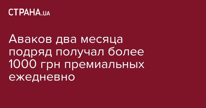 Аваков два месяца подряд получал более 1000 грн премиальных ежедневно