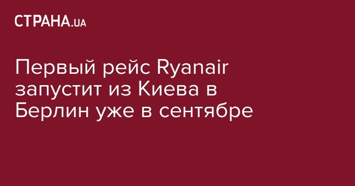 Ирландский лоу-кост авиаперевозчик Ryanair с сентября 2018 года запускает рейс из Киева в Берлин (аэропорт "Берлин-Шёнефельд"), сообщил авиаперевозчик в пятницу.