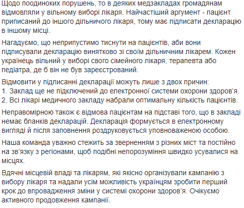 Неправомерным также является отказ пациентам на основании того, что в заведении нет бланков деклараций. Декларация формируется в электронном виде и после заполнения распечатывается уполномоченным лицом.