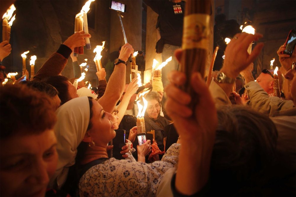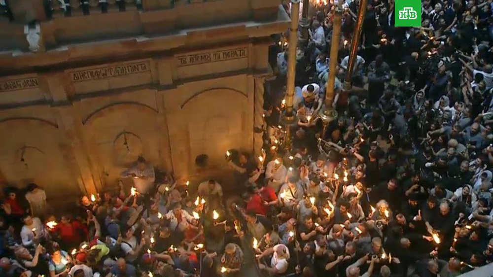 Тысячи паломников со всего света прибыли в Храм Господний, чтобы получить себе частичку Благодатного огня.
