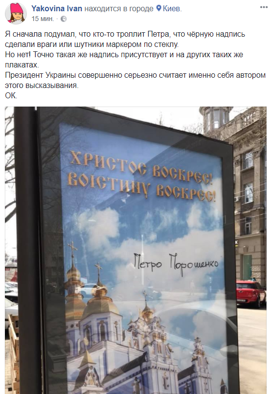 23:25 В соцсетях обсуждают ситилайты, на которых Петр Порошенко подписался под фразой "Христос воскрес".