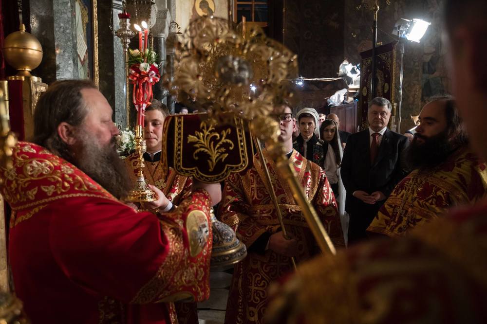 08:00 Президент Петр Порошенко в пасхальную ночь приехал помолиться в три церкви. Сначала во Владимирском соборе УПЦ КП, где он встретил собственно Пасху.