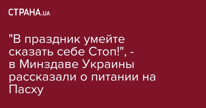 "В праздник умейте сказать себе Стоп!", - в Минздаве Украины рассказали о питании на Пасху