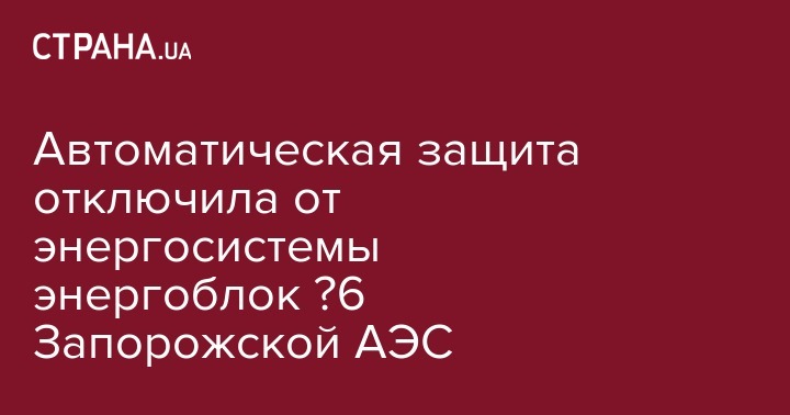В воскресенье днем энергоблок №6 Запорожской АЭС отключен от энергосистемы действием автоматической защиты вследствие снижения подачи питательной воды в парогенераторы, сообщает пресс-служба НАЭК "Энергоатом".
