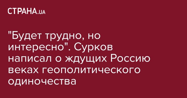Владислав Сурков, помощник российского президента Владимира Путина опубликовал в журнале "Россия в глобальной политике" статью под названием "Одиночество полукровки (14+)". В этой статье помощник президента России спрогнозировал будущее России на ближайшие годы.