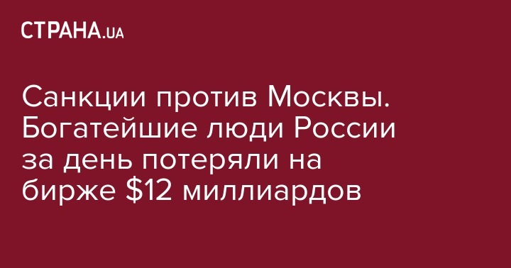 Совокупное состояние 50 богатейших людей России за один день сократилось более чем на $11,7 млрд после введения нового пакета антироссийских санкций. Это следует из данных экспертов журнала Forbes, рассчитываемых в режиме реального времени.