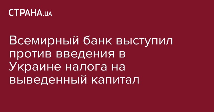 Всемирный банк выступил против введения в Украине налога на выведенный капитал