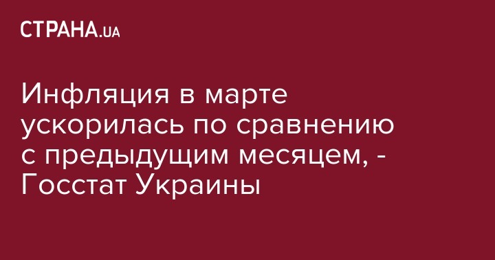 Инфляция в марте ускорилась по сравнению с предыдущим месяцем, - Госстат Украины