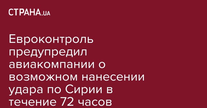 Евроконтроль выпустил предупреждение для гражданских воздушных судов, следующих маршрутами над восточным Средиземноморьем в связи с риском "нанесения авиаударов по Сирии" в течение 72 часов, сообщают РИА "Новости".